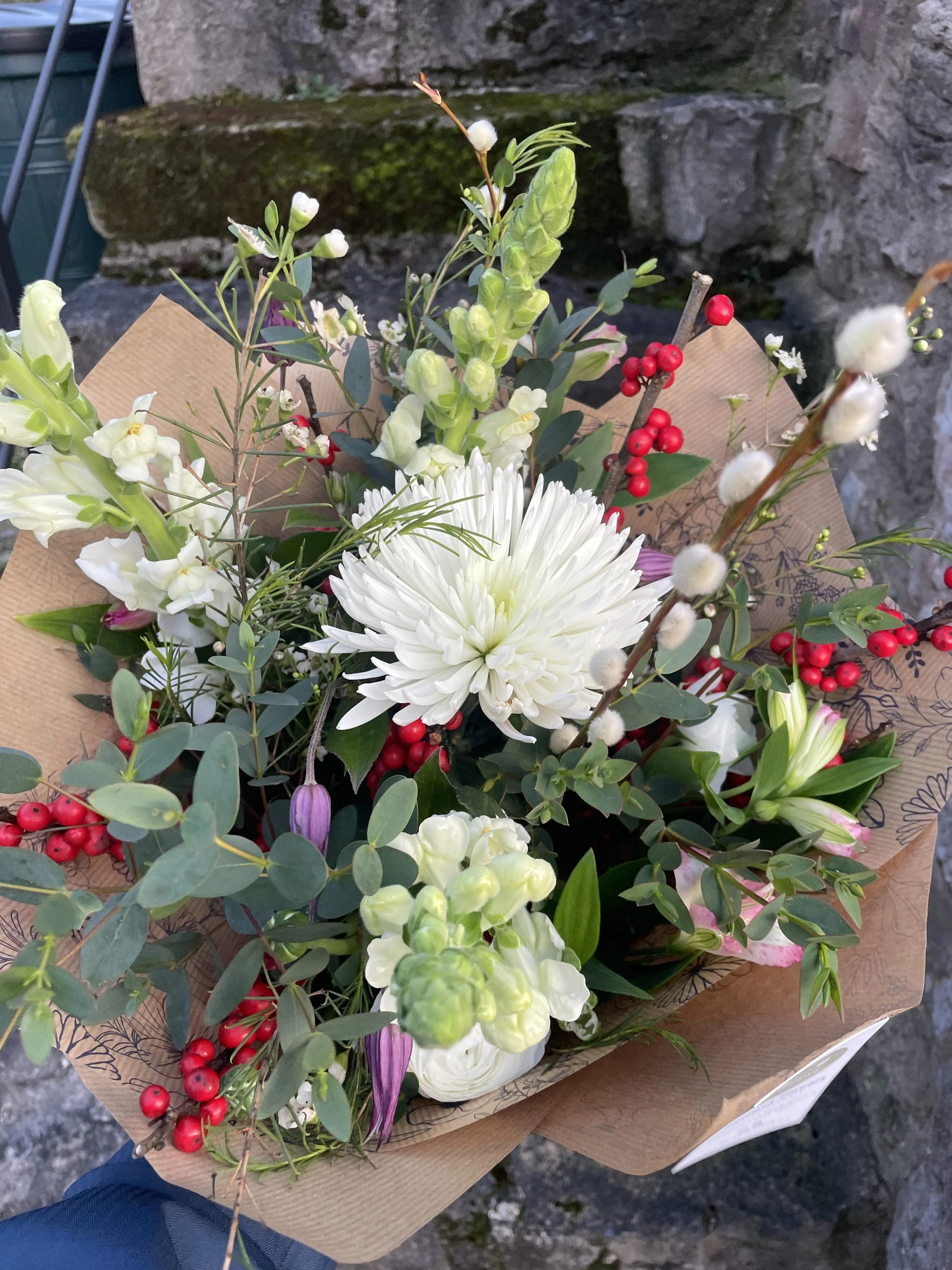 Shop Categories: All Gift Bouquets Wreaths Shop All | Gift Bouquets | Wreaths | Christmas Bouquet from £35.00 Gift Wrapped British Bouquet from £35.00 Christmas 'Traditional' Wreath from £50.00 Christmas 'Festive Fruits' Wreath from £50.00 Natural Christmas Wreath from £55.00 If you would like to order flowers for same day delivery please give us a call and we will do our best to help!